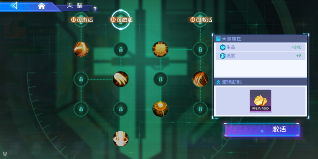n 激活消耗:消耗对应种族的天赋晶石可激活天赋节点